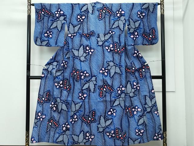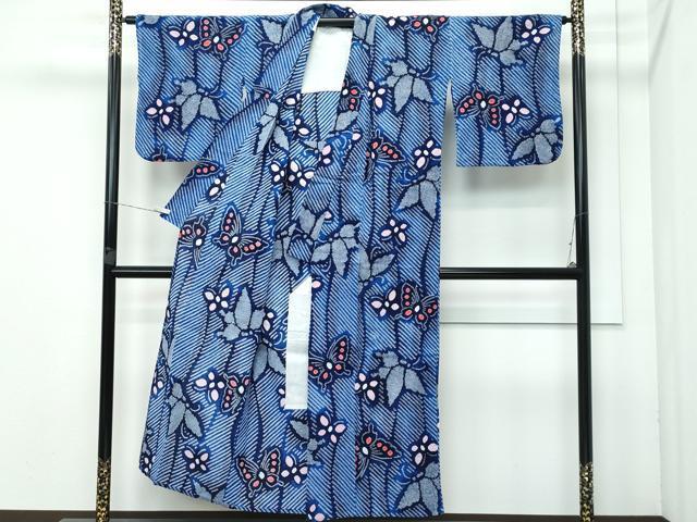 Heiwa-ya Kimono ■ Premium Summer Yukata, Arimatsu Narumi Shibori Dye, Dancing Butterfly Pattern, Cotton, Excellent Condition, CZAA3624s5