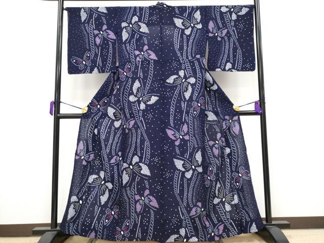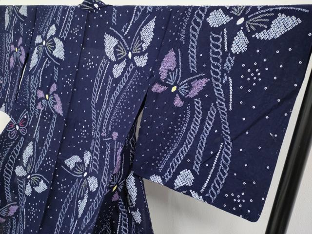 Heiwa-ya Kimono ■ Premium Summer Yukata, Arimatsu Narumi Shibori Dye, Dancing Butterfly Pattern, Cotton, Excellent Condition, Unused, CYAA3669s5