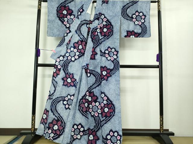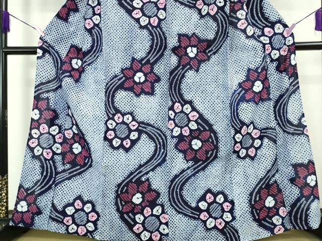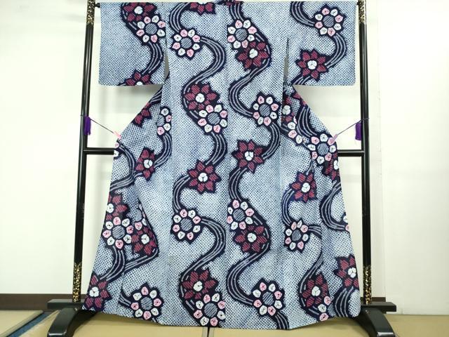 Heiwa-ya Kimono ■ Premium Summer Yukata, Arimatsu Narumi Shibori, Flowing Water and Floral Design, Cotton, Excellent Condition, DZAB1065kh5