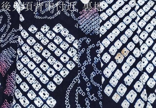状態は接写画像のように、後身頃背中付近・裏地に薄いシミがございますが