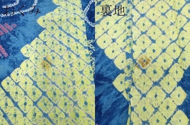 状態は接写画像のように、おくみ・裏地にシミがございますが、