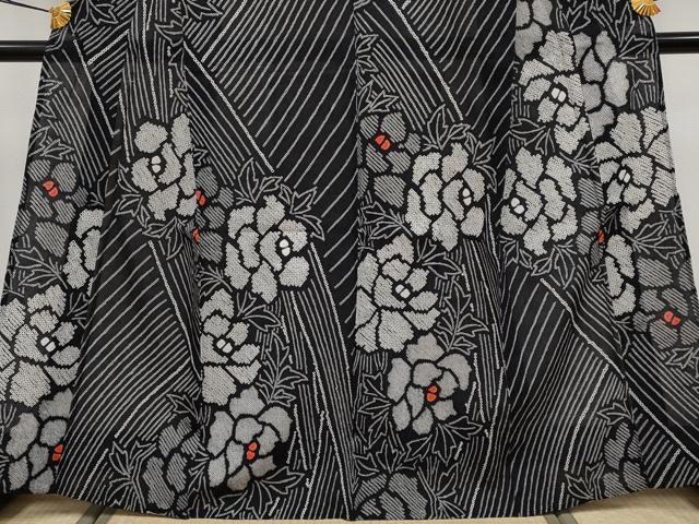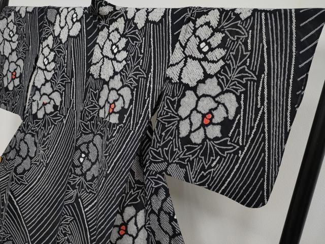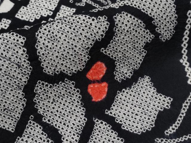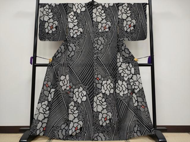 Heiwa-ya Kimono ■ Premium Summer Yukata, Arimatsu Narumi Shibori, Peony Pattern, Black Cotton, Excellent Condition, CYAA3683s5