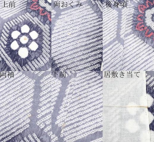 上前・両おくみ・後身頃・両袖・下前・居敷き当てに薄いシミがございます。