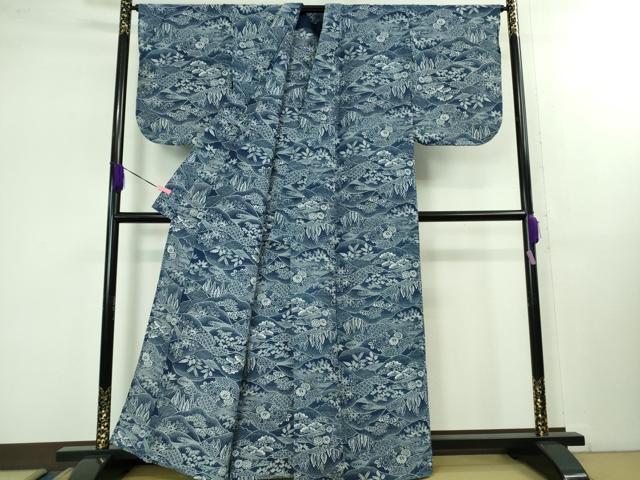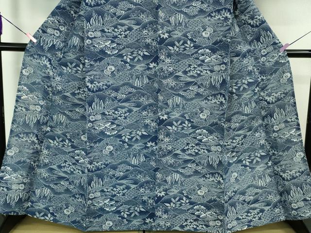 Heiwa-ya Kimono ■ Premium Summer Yukata Cotton Silk with Landscape and Mountain Design, Excellent Condition, DZAB1601kh5