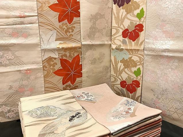 Heiwa-ya Kimono ■ Summer Fukuro Obi (Sash), Ro (Gauze), and Gauze (Sash) Collection of 50 Pieces, Landscape, Iris, Floral, and Tatsuta River Designs, Gold and Silver Thread, and More. Some unused pieces available. All pure silk. mmm992
