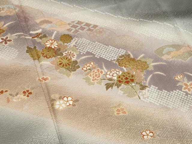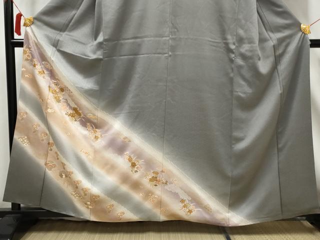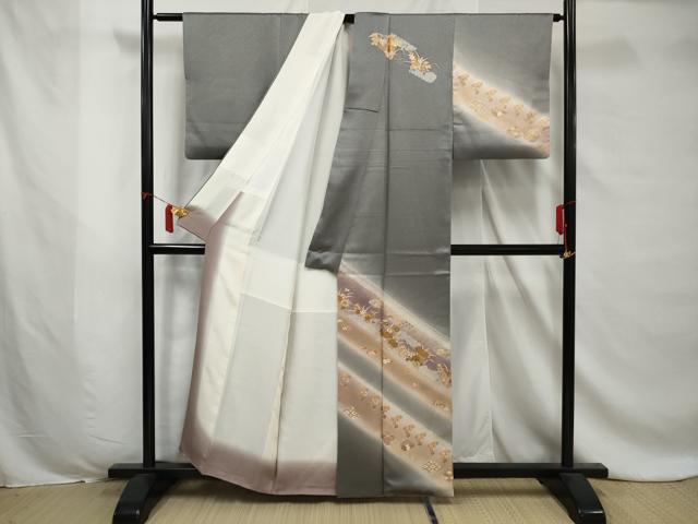 Heiwa-ya Kimono ■ Visiting Kimono, Auspicious Paper Grass and Flower Design, Gradient Dye, Gold Accents, Pure Silk, Excellent Quality, AABC2274gw