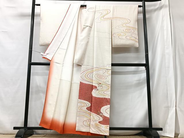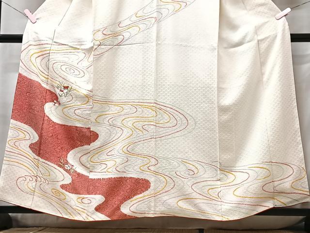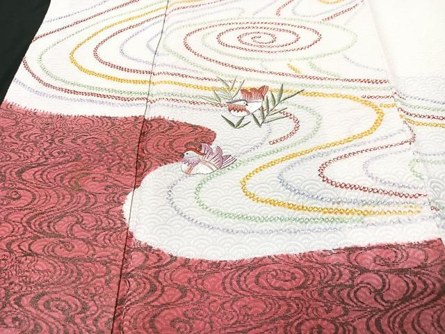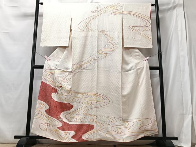 Heiwa-ya Kimono ■ Visiting Kimono, Embroidered, Shibori, Flowing Water and Mandarin Duck Flower Design, Pure Silk, Excellent Quality, CABB3003xe