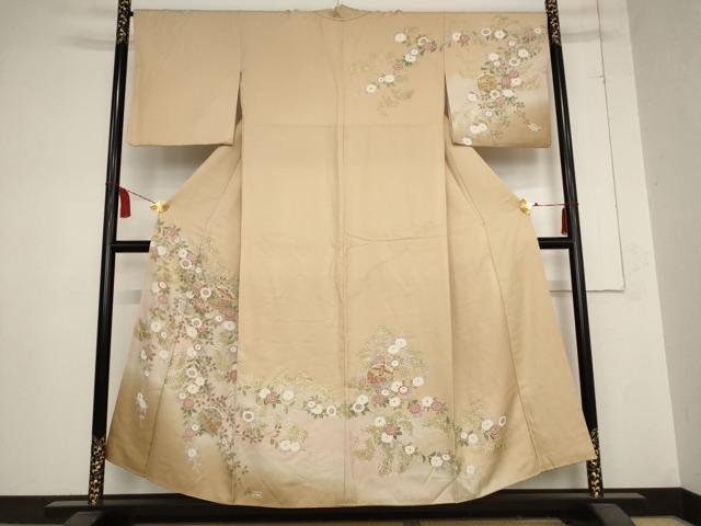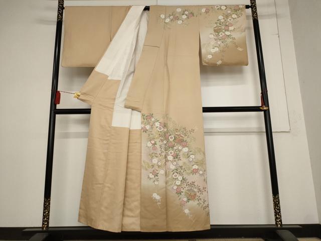 Heiwa-ya Kimono ■ Visiting Kimono, Floral Design, Gradient Dye, Gold Accents, Pure Silk, Excellent Quality, AABC8285st