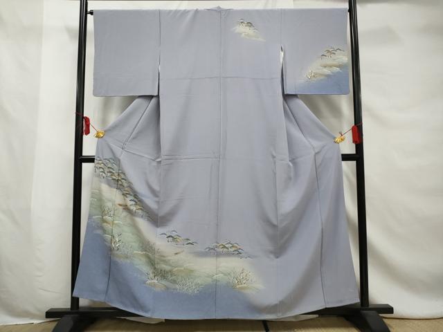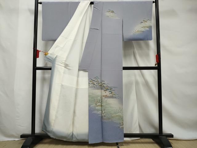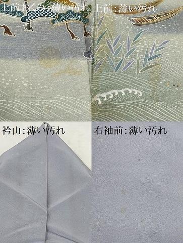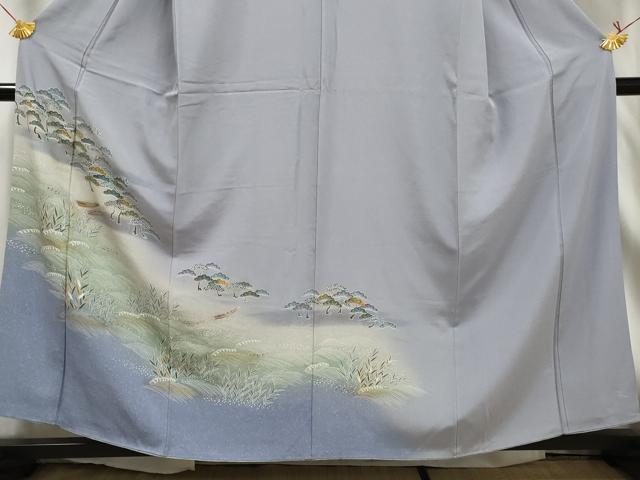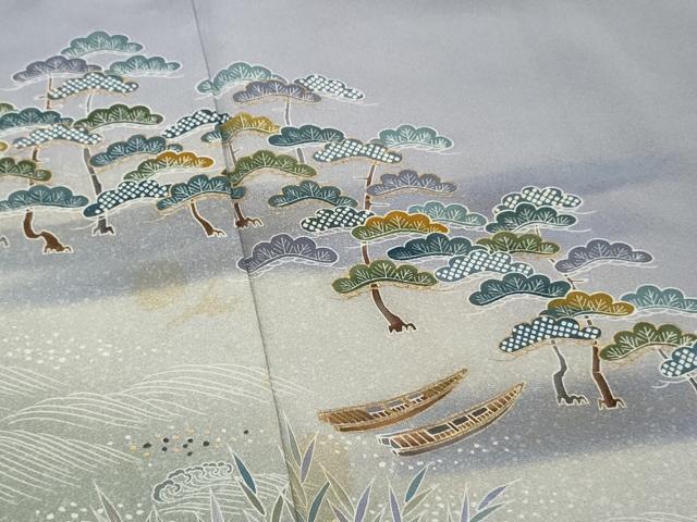 Heiwa-ya Kimono ■ Visiting Kimono, Flowing Water, Standing Waves, Pine Tree Design, Boat, Hamamatsu, Gradient Dye, Gold Accents, Pure Silk, Excellent Item, AABE0948gw