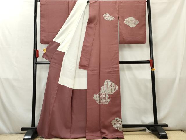 Heiwa-ya Kimono ■ Visiting Kimono, Mural Design, Silver-colored, Pure Silk, Excellent Quality, AABC1330cs