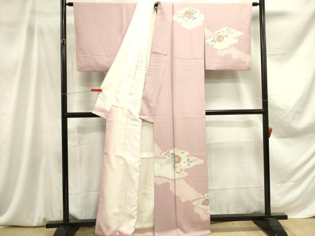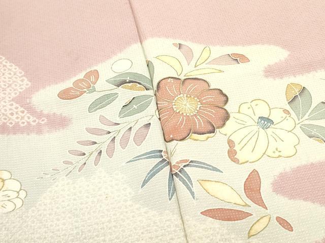 Heiwa-ya Kimono ■ Visiting Kimono, Shibori Pattern, Floral Design, Gold Accents, Pure Silk, Excellent Quality, DABA6277op