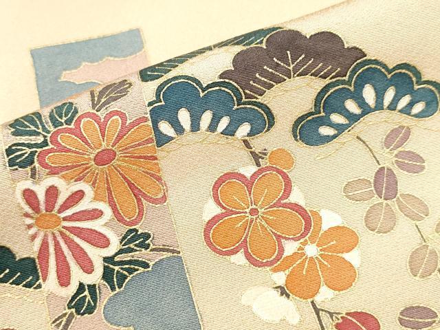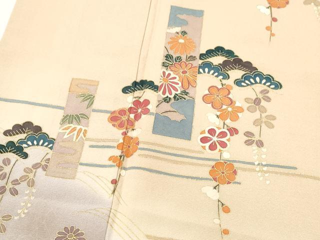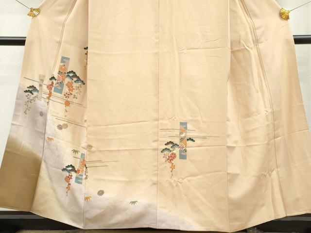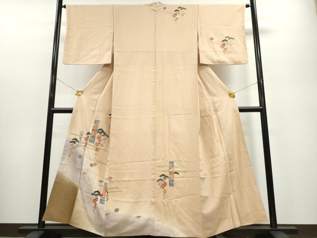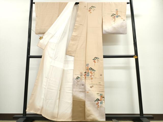 Heiwa-ya Kimono ■ Visiting Kimono, Tanzaku Pine and Flower Design, Gradient Dyed, Gold Accents, Pure Silk, Excellent Quality, CABA0594ng