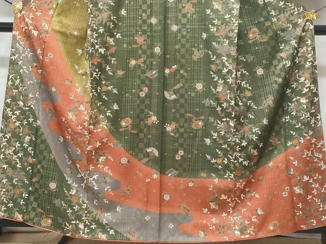 Heiwa-ya Kimono ■ Visiting Kimono, Treasure-filled Floral Design, Pure Silk, Excellent Quality, CABB3609fb