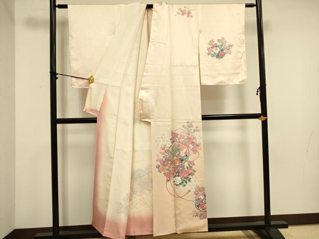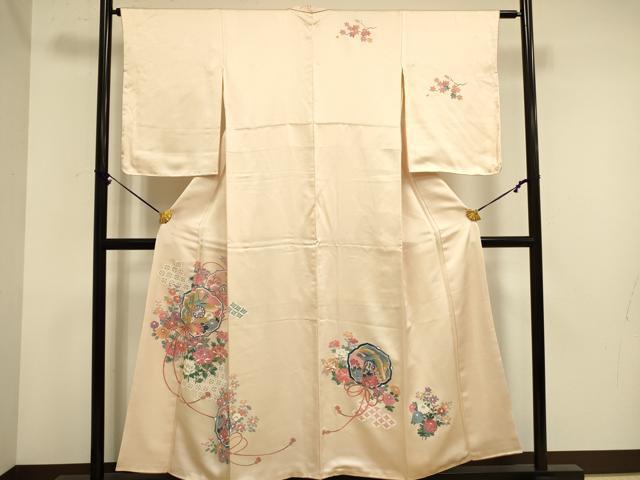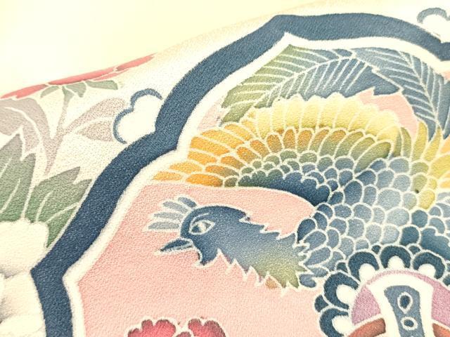Heiwa-ya Kimono ■ Visiting Kimono, Yuzen, Mirror-Back Flower and Bird Design, Pure Silk, Excellent Item, DABA6564op