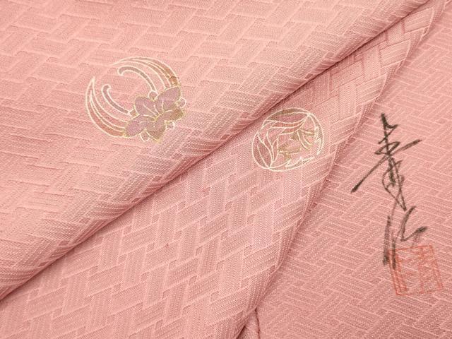 Heiwa-ya Kimono ■ Yuzen Master Artist, Aoi Aoi, Small Pattern, Flower and Grass Circle Design, Gold Accents, Pure Silk, Excellent Item, DABA6524op