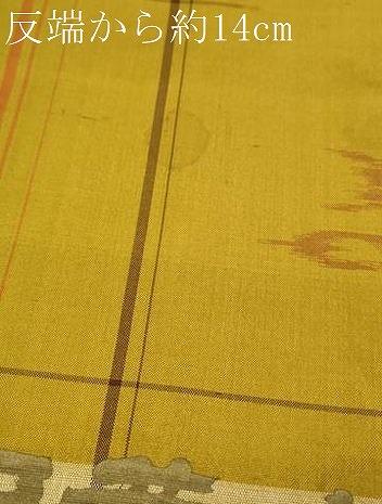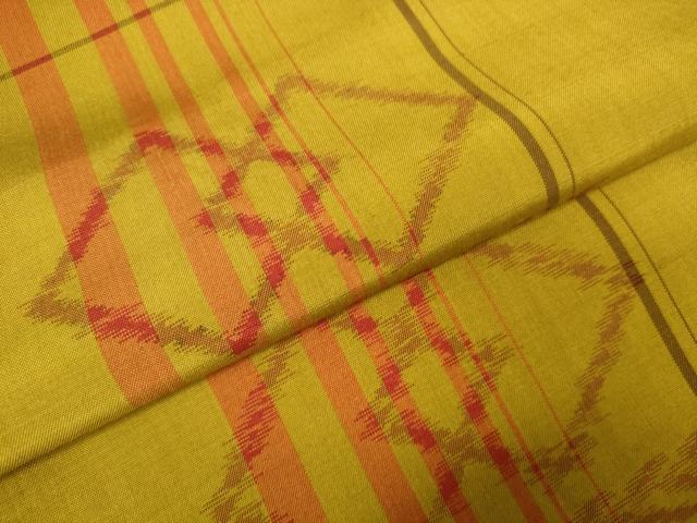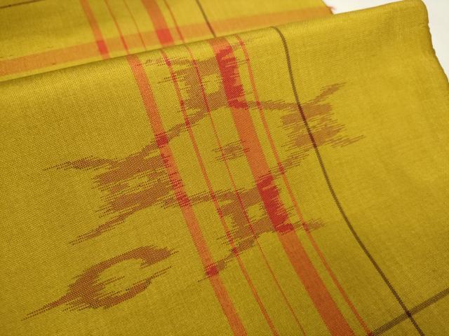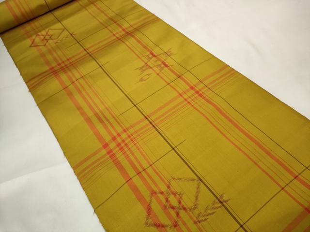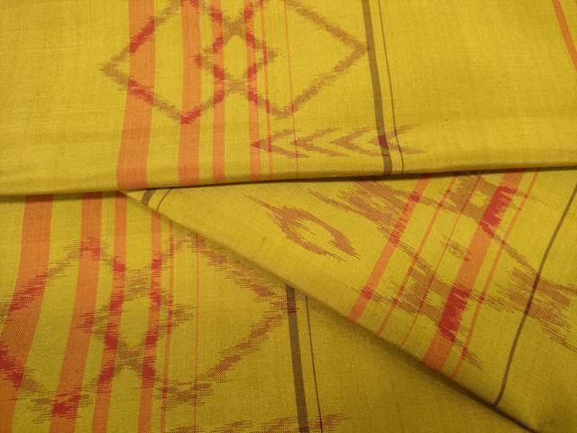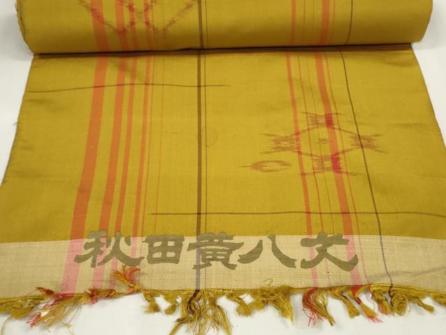 Heiwa-ya Kimono ▼ Akita Yellow Hachijo Tsumugi Kimono Fabric, Kasuri Pattern, Excellent Condition, Unused, DAAW7917zzz