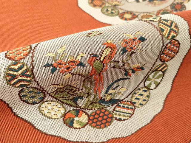 仏具のひとつである独鈷、華皿を基にした幾何学模様が織られています。