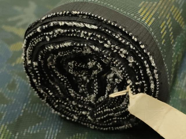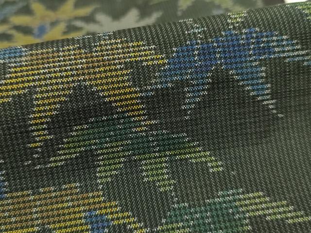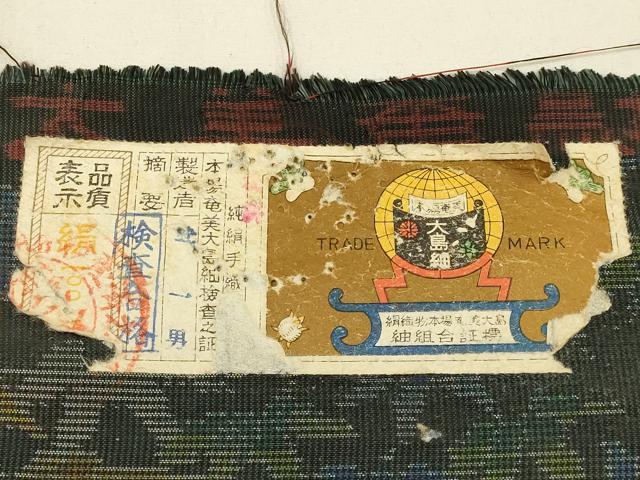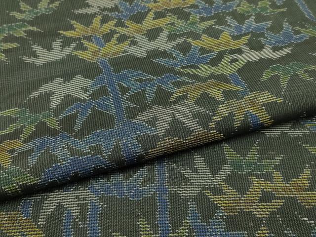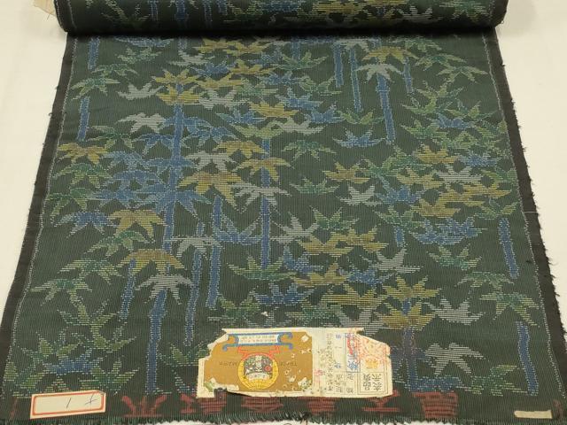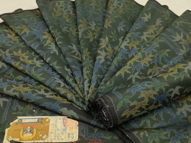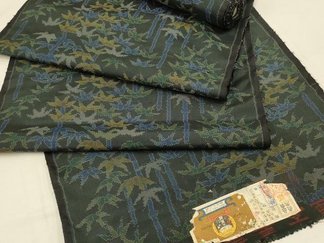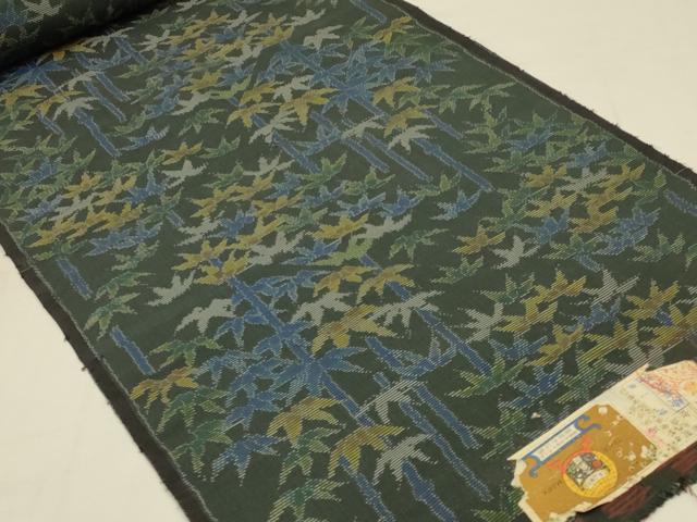 Heiwa-ya Kimono ▼ Authentic Oshima Tsumugi Kimono Fabric, Handwoven, Bamboo and Sasa Design, Pure Silk, Excellent Condition, Unused, AABB7120ay