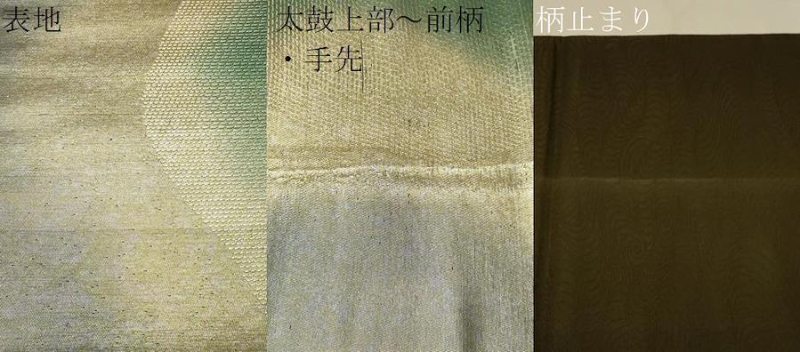 太鼓上部から前柄にかけて・手先に折山のスレ、柄止まりに折山の線汚れがございます。