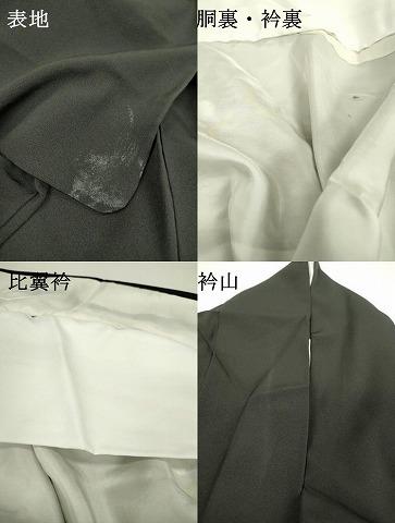 状態は接写画像のように表地所々・胴裏・衿裏・比翼衿・衿山に薄い汚れがございます。