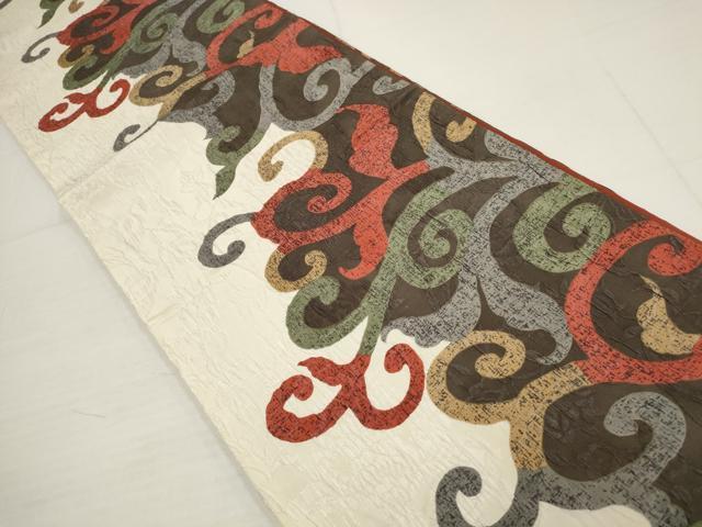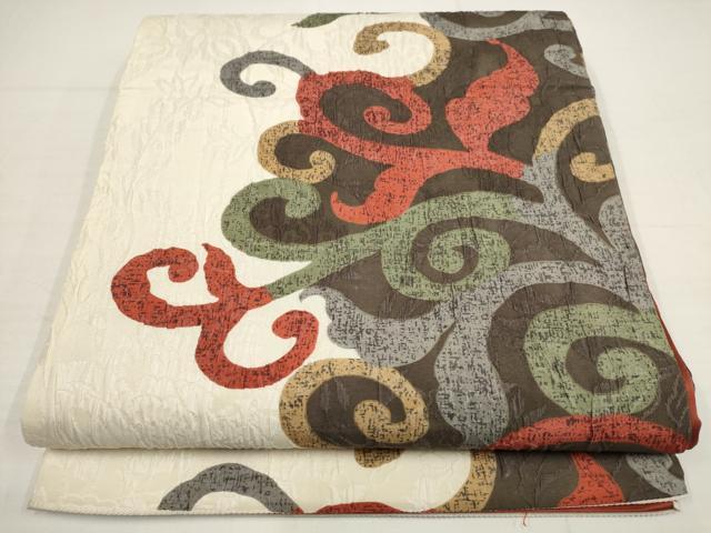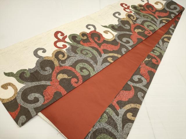 Heiwa-ya Kimono ▼ Hakata-ori "Hosho" Full-Length Pattern Obi, Puffed Weave, Arabesque Pattern, Pure Silk, Excellent Item AABA8560wj