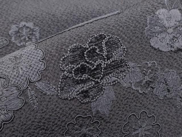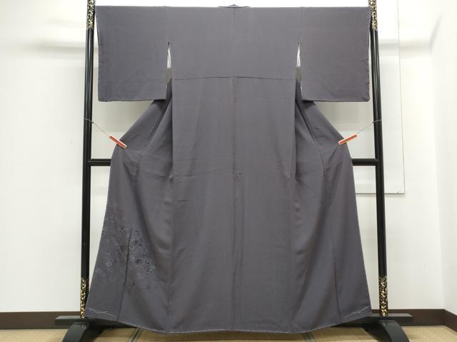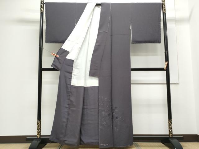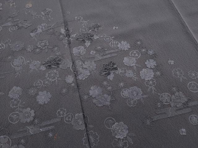 Heiwa-ya Kimono ▼ Irodome Homongi (Visiting Kimono) - Fully Embroidered with a Dancing Flower Pattern, Dark Gray, Pure Silk, Excellent Item, CABA8501th