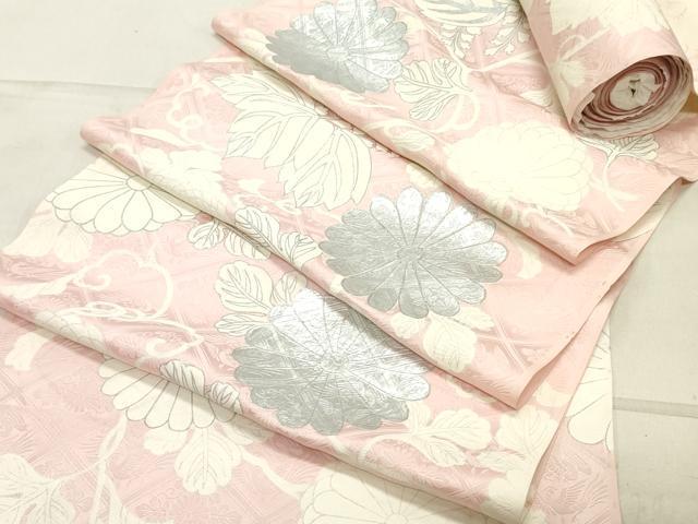 Heiwa-ya Kimono ▼ Komon (small pattern) - Unwrapped Kimono Fabric - Koma Embroidery - Floral Design - Silver Finish - Excellent Quality - DAAY7185zy