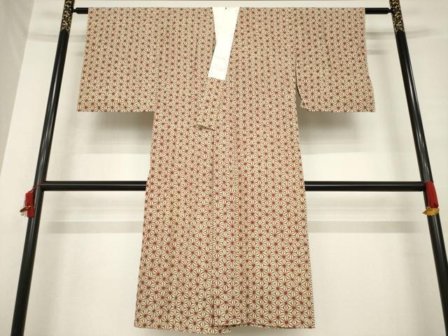 Heiwa-ya Kimono ▼ Nagajuban (long under-kimono) - Double-stitched, Hemp Leaf Pattern, Pure Silk, Excellent Quality, AABE7582ck