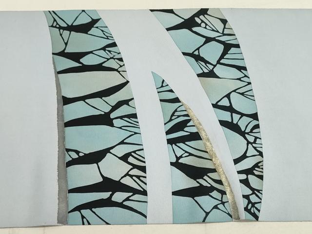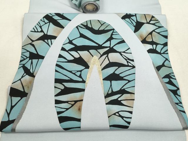 Heiwa-ya Kimono ▼ Nagoya Obi, Obi Fabric, Abstract Pattern, Gold Leaf, Excellent Condition, Unused, DAAW6056we
