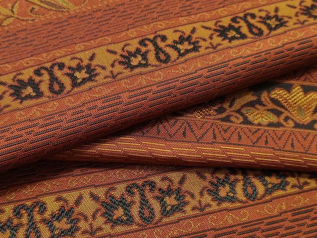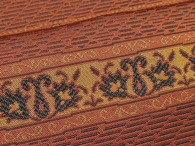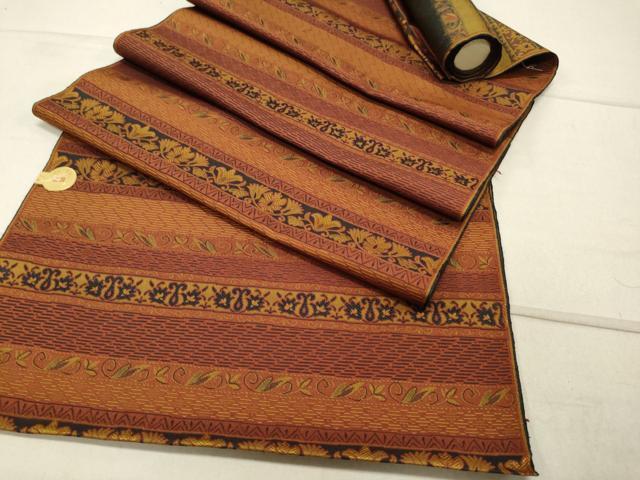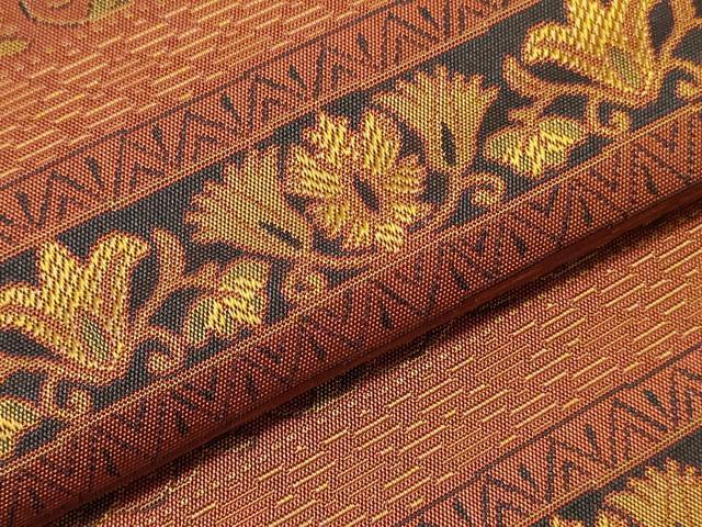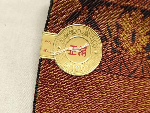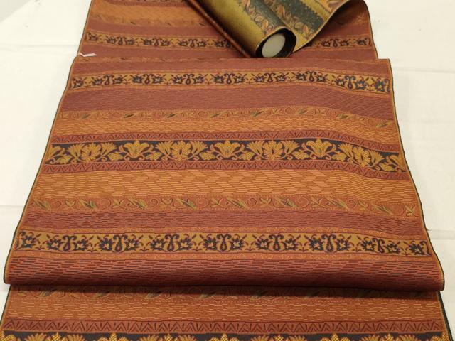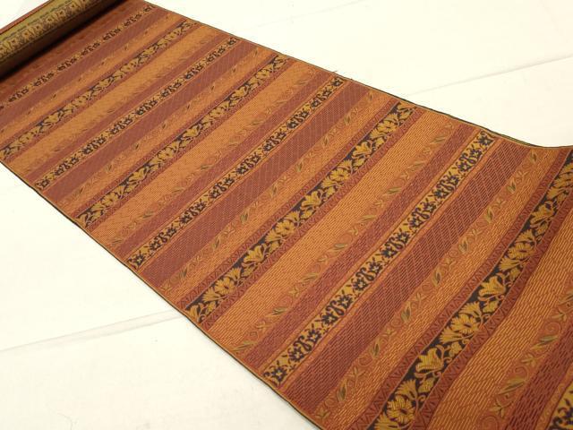 Heiwa-ya Kimono ▼ Nishijin, Koike Orimono's Nagoya Obi, Obi Fabric, Horizontal Striped Chrysanthemum Floral Pattern, Certificate Included, Excellent Condition, Unused, DABA2542zy