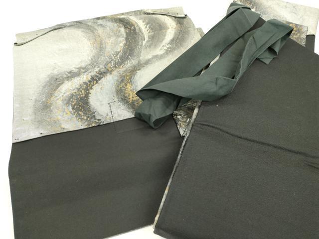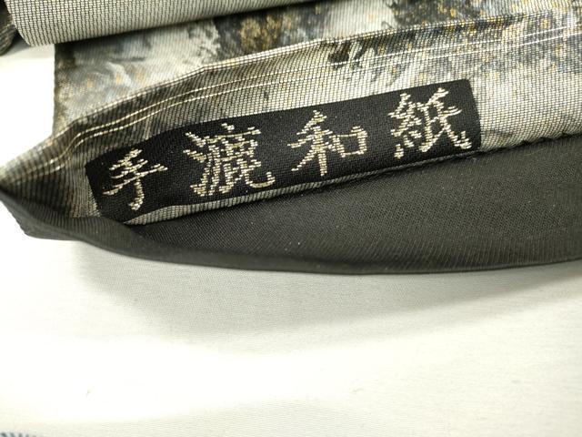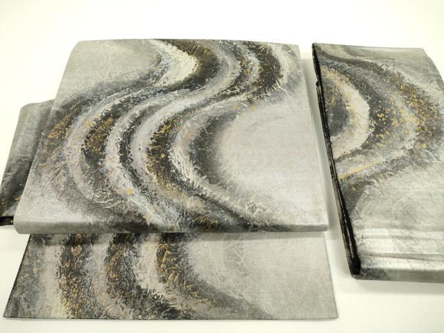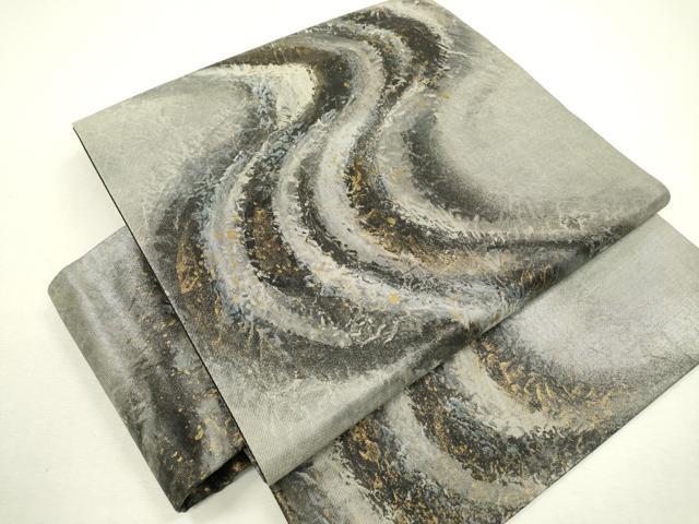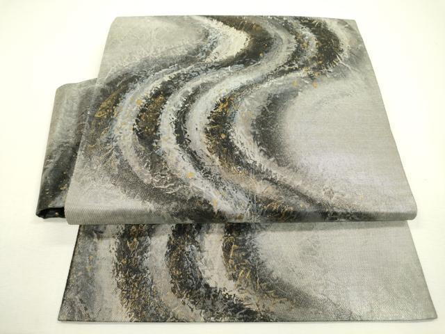 Heiwa-ya Kimono ▼ Obi (sash) - Handmade Japanese paper with flowing water design, gold and silver accents, and gold leaf accents. Pure silk. Excellent quality. DAAX9820fe