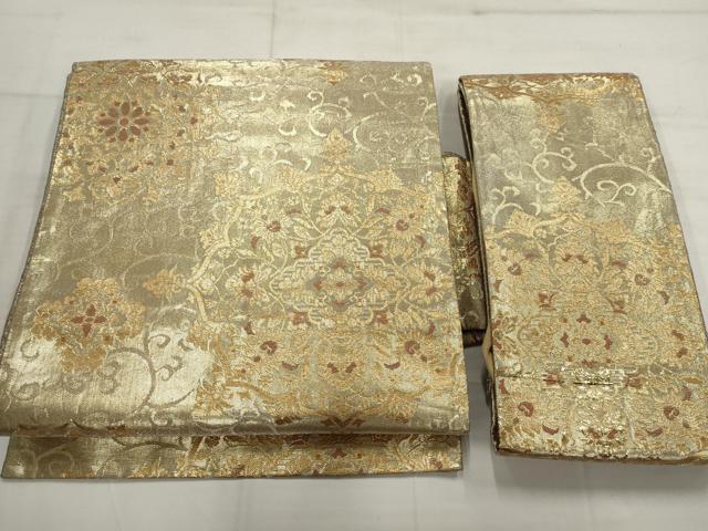 Heiwa-ya Kimono ▼ Obi (sash) with auspicious floral arabesque pattern, gold thread, pure silk, exquisite item, AABC6719wj