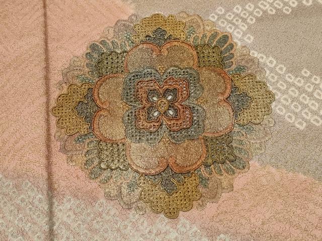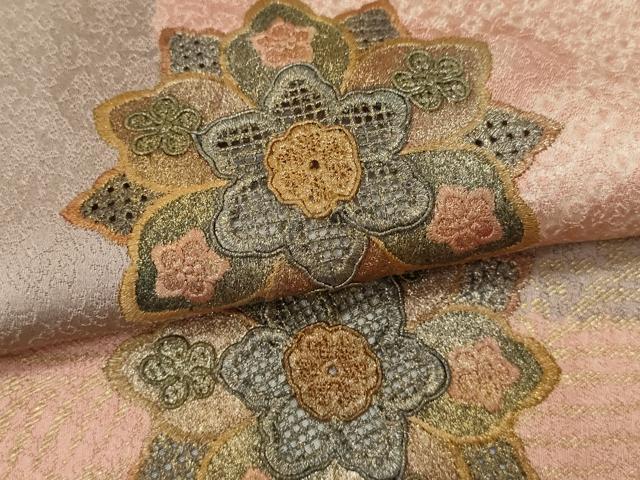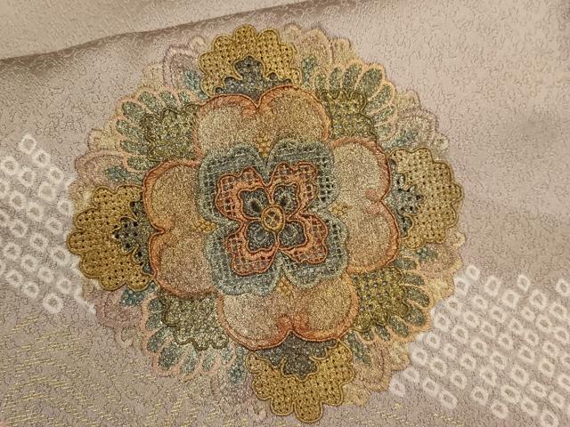 Heiwa-ya Kimono ▼ One of the Three Great Chinese Embroideries, Swatow Embroidery, Homongi Kimono, Shibori, Michinaga Shosoin Flower Design, Gold-Lit, Pure Silk, Excellent Item, CAAY6187ze