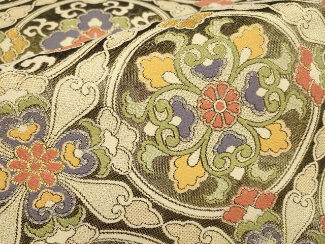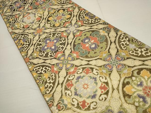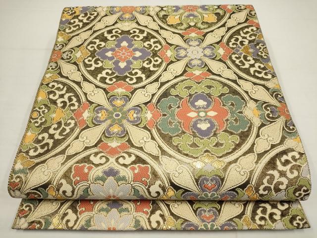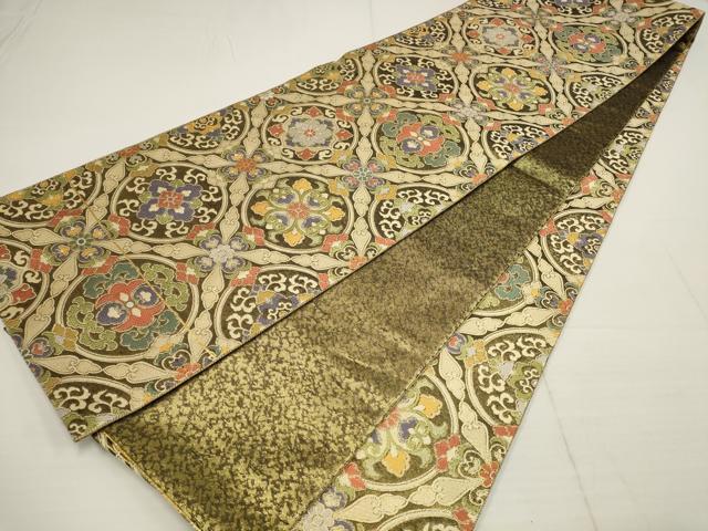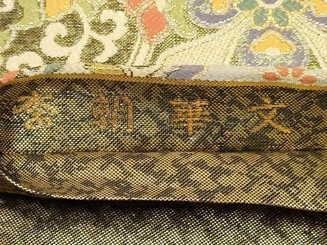 Heiwa-ya Kimono ▼ Saga Nishiki Full-Length Pattern Obi, Joseon Dynasty Floral Design, Gold Thread, Pure Silk, Excellent Item AABA8567wj
