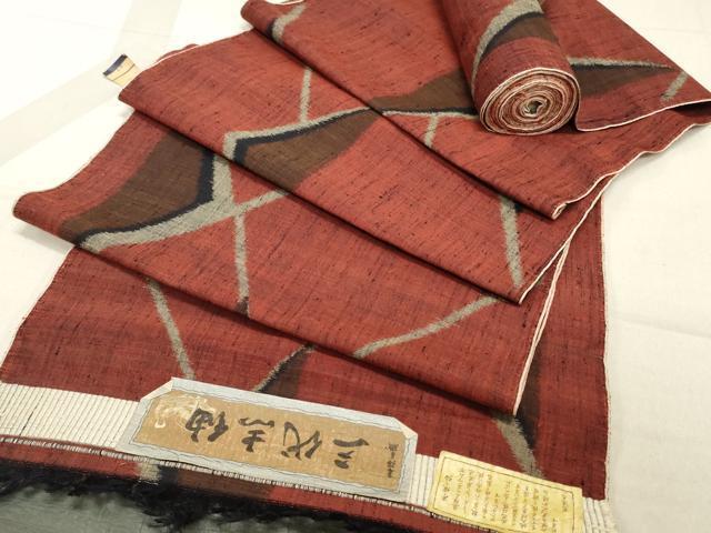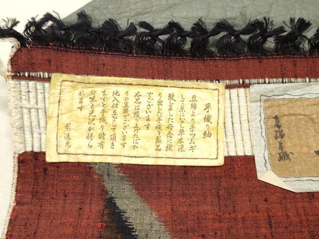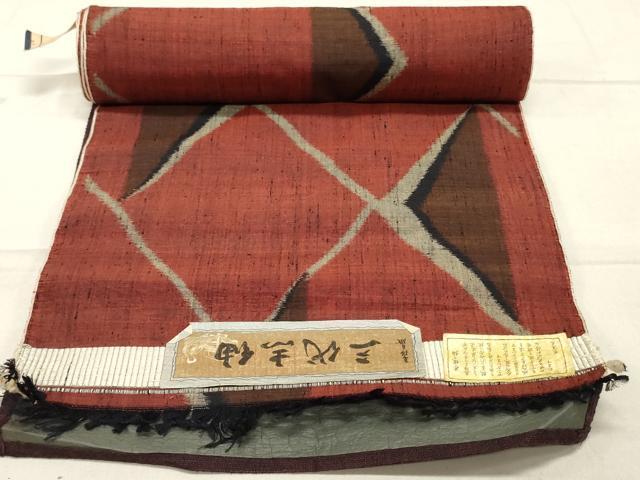 Heiwa-ya Kimono ▼ Sandai Shi Tsumugi Kimono Fabric, Geometric Pattern, Excellent Condition, Unused, DAAX6525zy