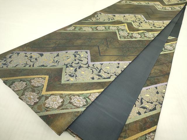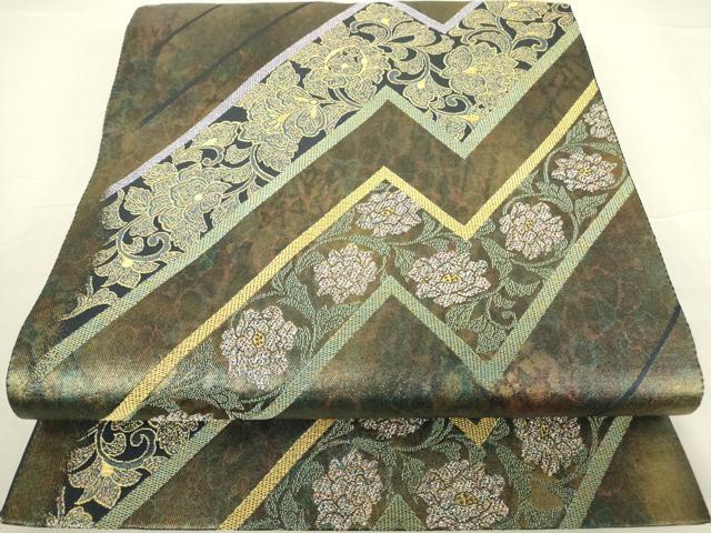 Heiwa-ya Kimono ▼ Six-pass pattern obi, chintz floral design, silver thread, drawn foil, pure silk, exquisite item, DAAY9805az