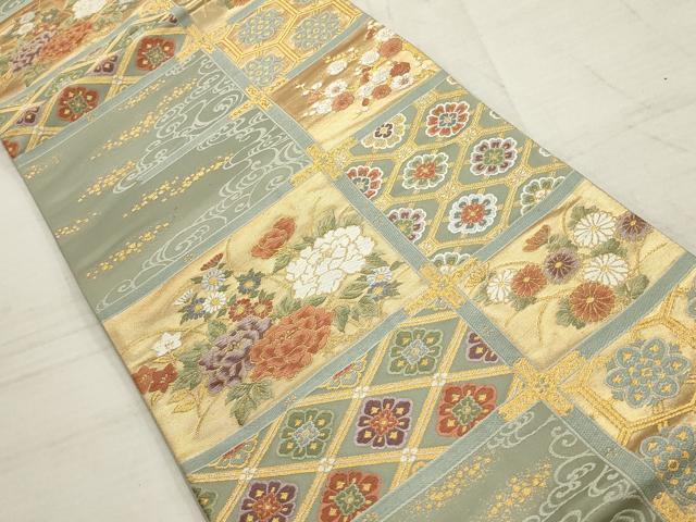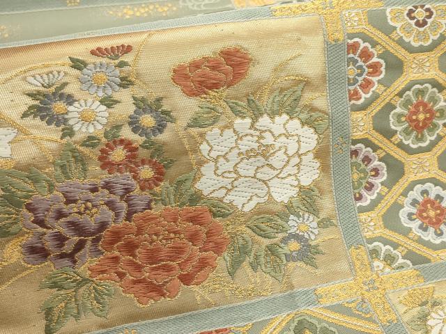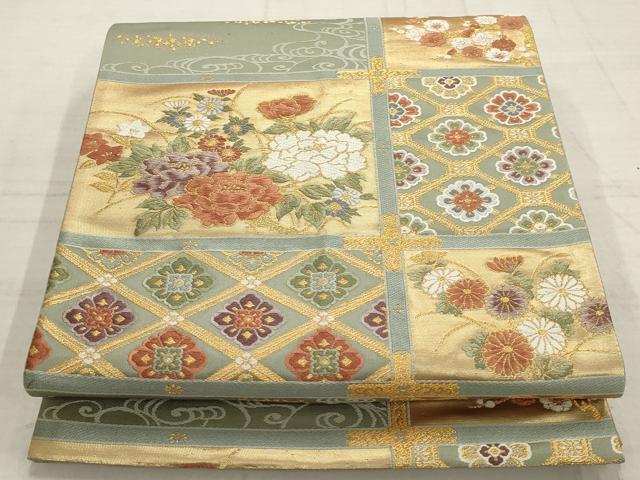 Heiwa-ya Kimono ▼ Six-pass pattern obi, Karaori, ceiling flower design, gold thread, pure silk, exquisite item AABD3000wj