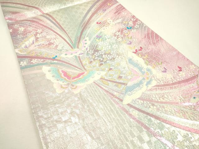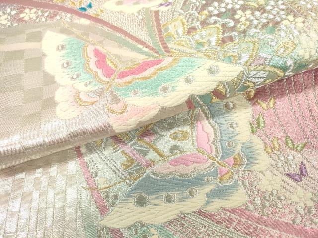 Heiwa-ya Kimono ▼ Six-pass pattern obi, Karaori weave, dancing butterfly and flower design, gold and silver thread, pure silk, exquisite item, DAAX9673fe