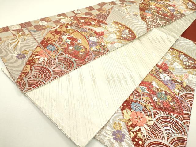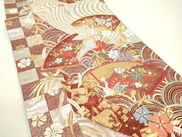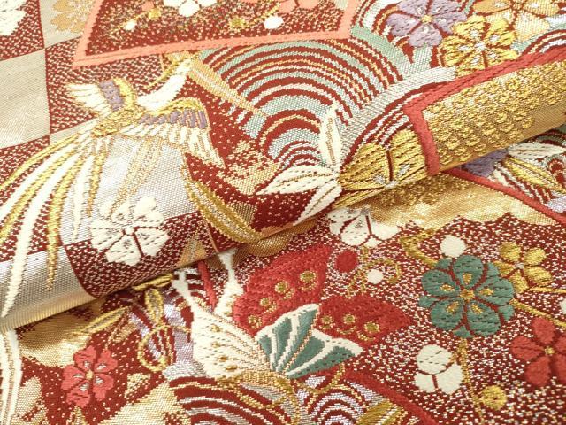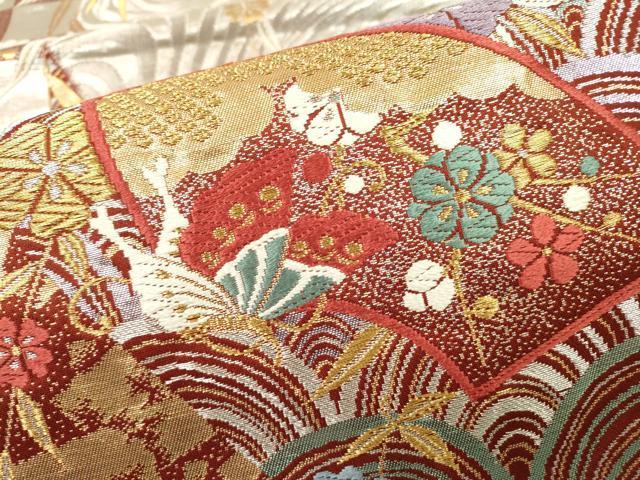 Heiwa-ya Kimono ▼ Six-pass pattern obi, Karaori weave, dancing butterfly and phoenix pattern on paper with floral motif, gold and silver thread, pure silk, exquisite item, DAAX9671fe
