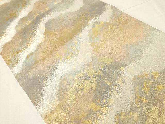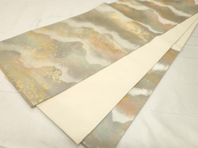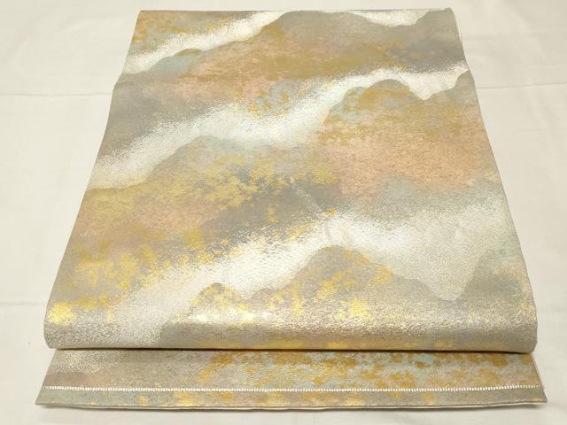 Heiwa-ya Kimono ▼ Six-pass pattern obi with a distant mountain and haze design, gold and silver threads, and gold leaf detailing. Pure silk. Excellent quality. CABA2019dy