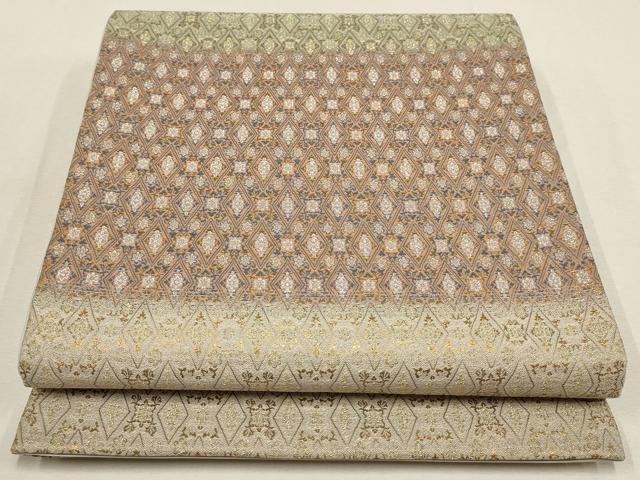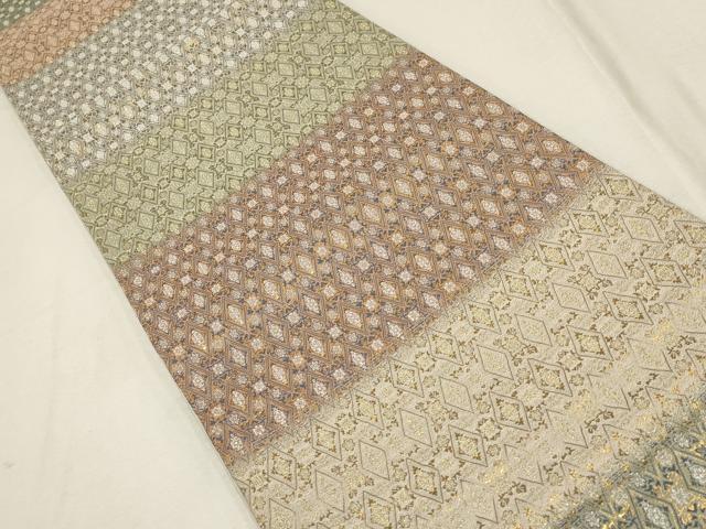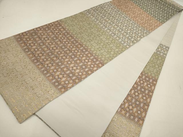 Heiwa-ya Kimono ▼ Six-pass pattern obi with horizontal stripes and a diamond pattern, gold and silver thread, pure silk, excellent quality AABD8333wj