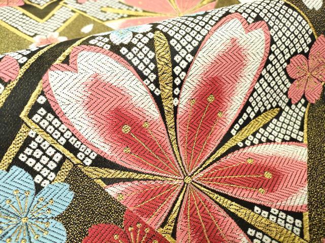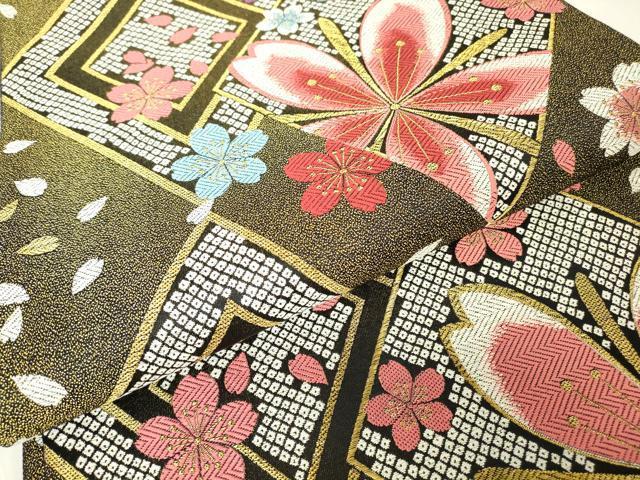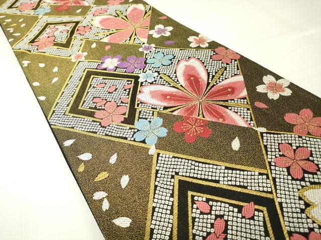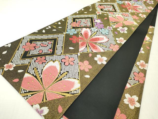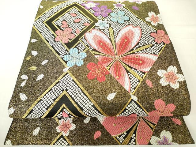 Heiwa-ya Kimono ▼ Six-way Pattern Fukuro Obi (Sash) with Dancing Cherry Blossoms and Gold Thread, Pure Silk, Excellent Item, DAAY9747az