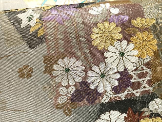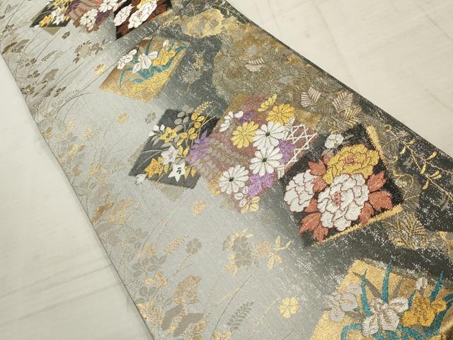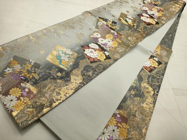Heiwa-ya Kimono ▼ Six-way Pattern Obi, Colored Paper with Floral and Grass Design, Gold and Silver Thread, Pure Silk, Excellent Quality, AABD3055wj