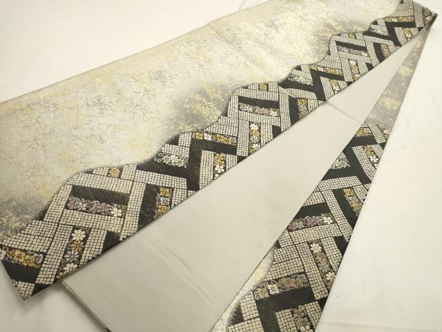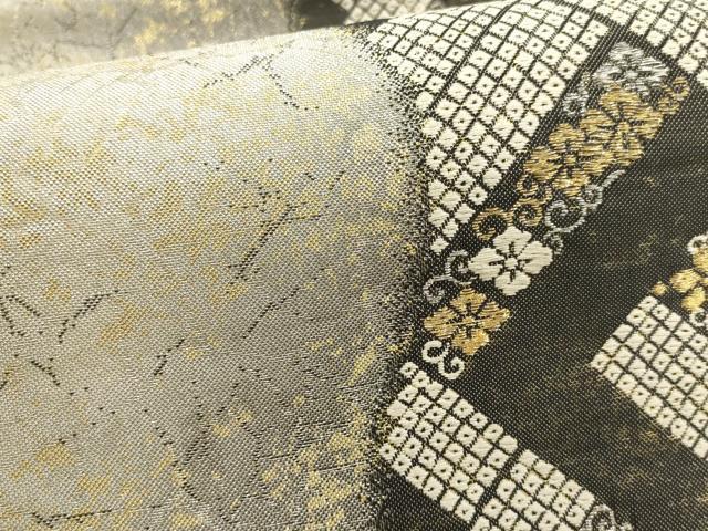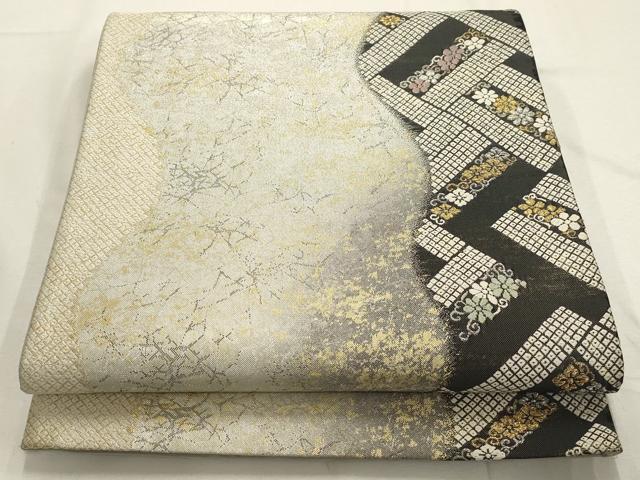 Heiwa-ya Kimono ▼ Six-way Pattern Obi, Kasumi Hana Kanmichi, Gold and Silver Thread, Pure Silk, Excellent Item AABD7791wj