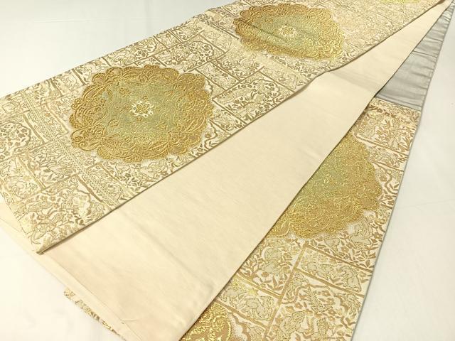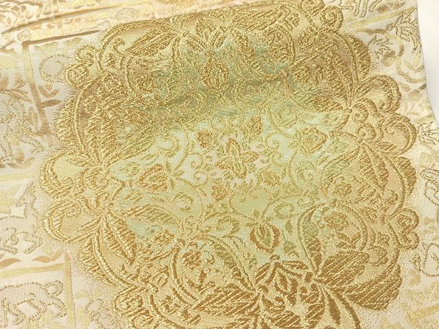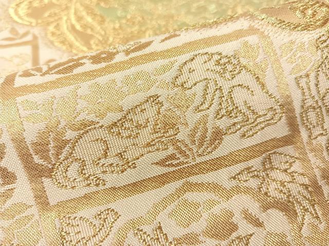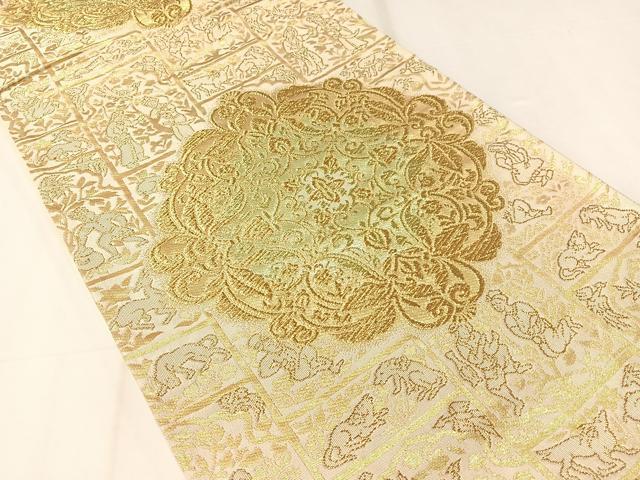 Heiwa-ya Kimono ▼ Six-way Pattern Obi, Shosoin Animal and Floral Design, Gold Thread, Pure Silk, Excellent Quality, CAAY6915vp