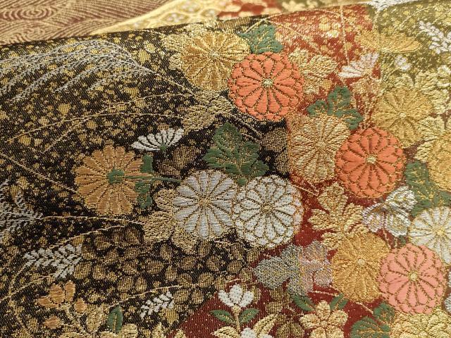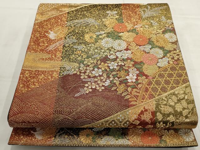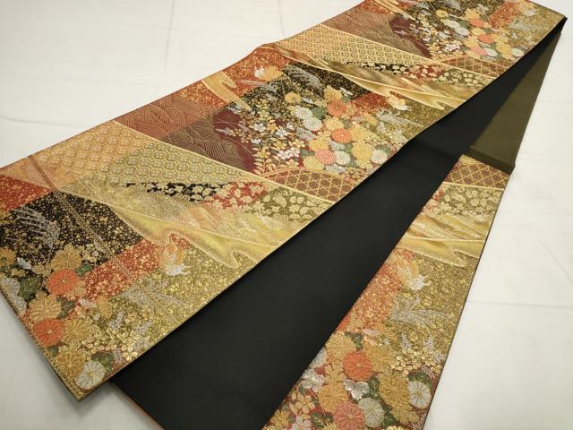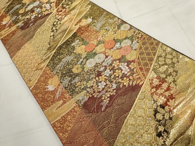 Heiwa-ya Kimono ▼ Six-way Pattern Obi with Flower and Butterfly Design, Gold and Silver Thread, Pure Silk, Excellent Item AABD3072wj