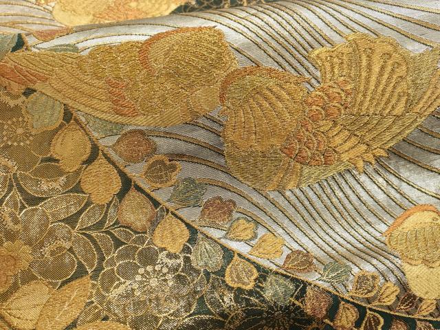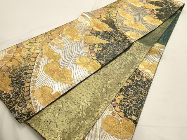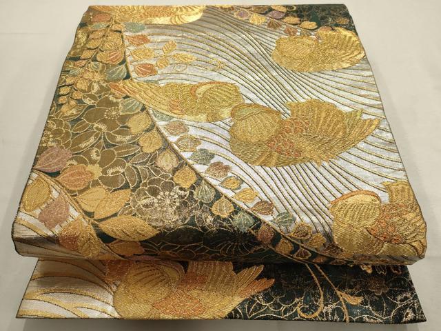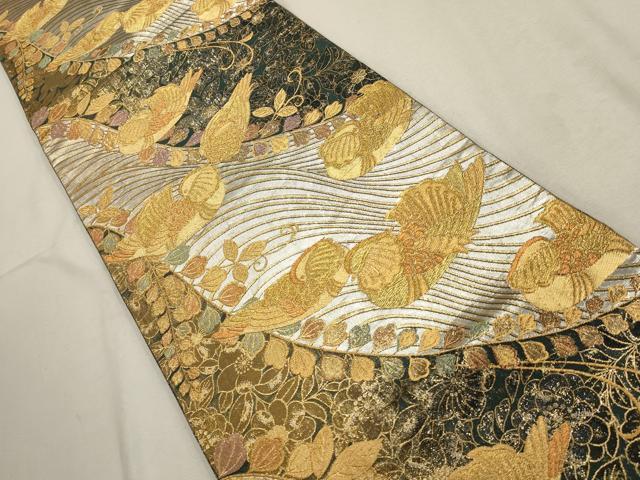 Heiwa-ya Kimono ▼ Six-way Pattern Obi with Mandarin Duck and Flower Design, Gold and Silver Thread, Pure Silk, Excellent Item AABD7915wj