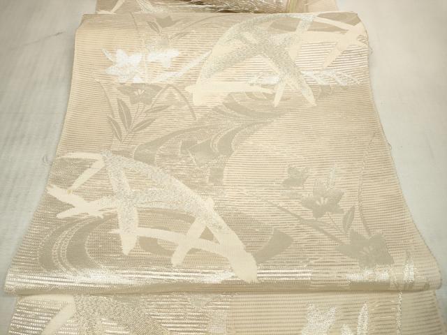 Heiwa-ya Kimono ▼ Summer Nagoya Obi Obi Fabric Flowing Water and Bellflower Design Silver Thread Excellent Item Unused DAAS6924zzz