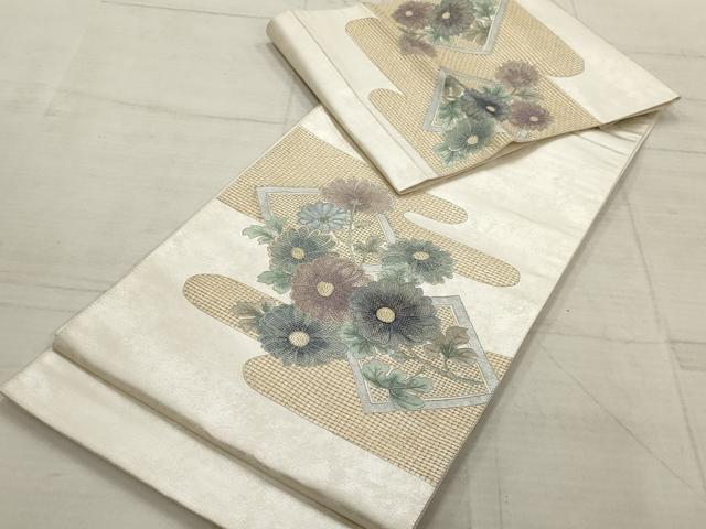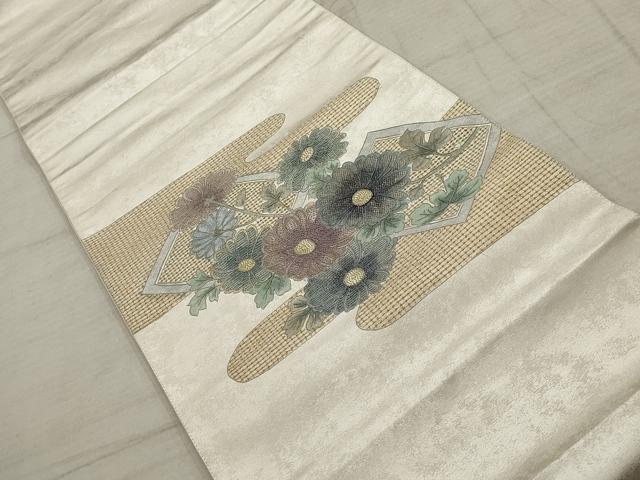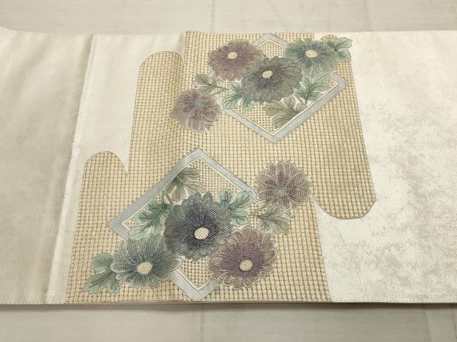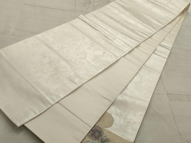 Heiwa-ya Kimono ▼ Suzhou Embroidery Fukuro Obi with Haze and Floral Design, Gold and Silver Threads, Drawn Leaf, Pure Silk, Excellent Quality, AABC6584wj