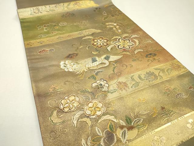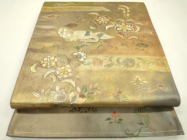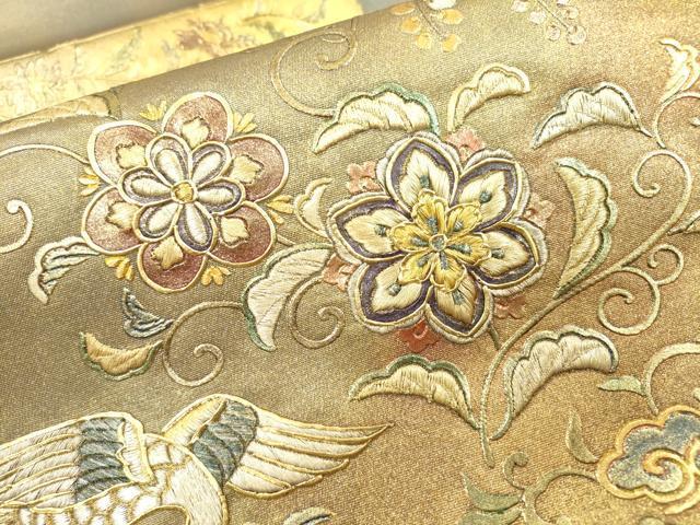 Heiwa-ya Kimono ▼ Taiko Drum Pattern Obi, Embroidered Asuka Flower Arabesque Design, Gold and Gold Leaf, Pure Silk, Excellent Condition, Unused, DAAZ6742fe